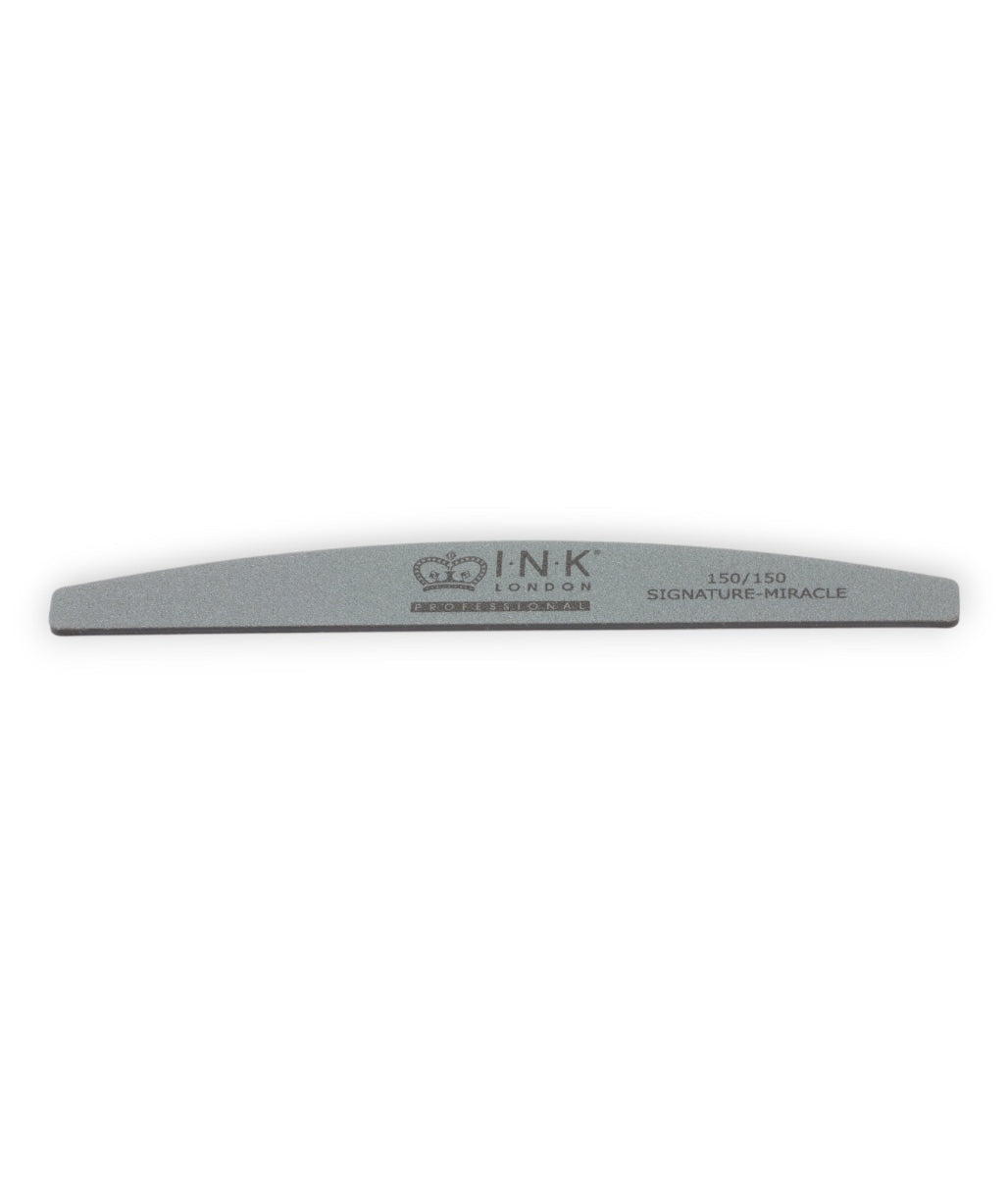 The 150/150 grit Signature miracle file is made entirely from Mylar. The dimensional stability and tensile strength is off the charts. The best way to describe the miracle file is a semi-permanent file due to its increased durability. The file is 100% washable, use, wash(disinfect) and re-use.